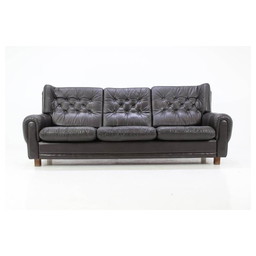 Mid-century 3-zitsbank in bruin leer - 1960
