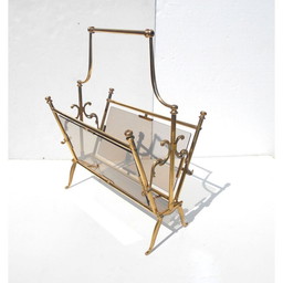 Vintage tijdschriftenrek van Lacca in messing en glas 1950