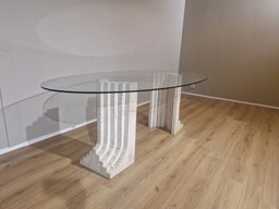 Travertine Eettafel - Vintage - Glas - Design - 70'S