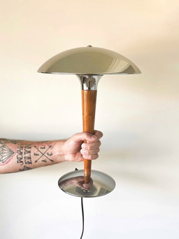 Ikea Dakapo Set of 2 Wood with Chrome Mushroom Lamps, Vintage