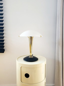 Mushroom lamp, Luciano Cesaro, messing/ mat zwarte tafellamp, jaren 90, ItalyMushroom lamp, Luciano Cesaro, messing/ mat zwarte tafellamp, jaren 90, Italy