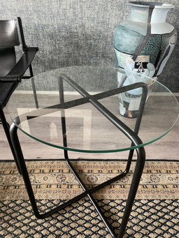 Verchroomde glazen tafelsetVerchroomde glazen tafelset