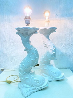 2 Italiaanse keramische tafellampen uit de jaren 70 in de vorm van een vis