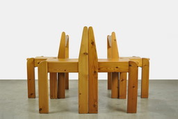 Houtwerk Hattem / Massief grenen Brutalistische Eettafel Stoelen / Ate Van Apeldoorn / 1970S Nederland