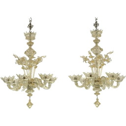 Paar vintage kroonluchters van Murano glas, Italië 1950