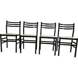 Set van 4 vintage stoelen van zwart gelakt hout en touw, Italië 1970
