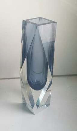 Gefacetteerde blauwe Muranoglas vaas, 1950S