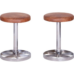 Paar vintage Bauhaus krukken van chroomstaal en bruin leer, Tsjecho-Slowakije 1939