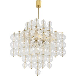 Vintage kroonluchter van geblazen glas en verguld messing, Italië 1970