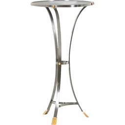 Vintage "Canabas" kolomtafel in gepatineerd leer en staal, Frankrijk