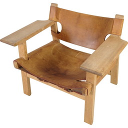 Vintage Spaanse fauteuil model Bm2226 in eikenhout en gepatineerd leer van Børge Mogensen, 1958Vintage Spaanse fauteuil model Bm2226 in eikenhout en gepatineerd leer van Børge Mogensen, 1958