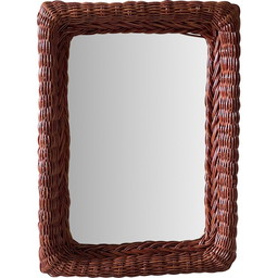 Vintage rechthoekige wandspiegel met rotan lijst, 1980