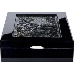 Vintage Art Deco juwelendoosje in zwarte lak en gebeeldhouwde jadesteen, 1930Vintage Art Deco juwelendoosje in zwarte lak en gebeeldhouwde jadesteen, 1930