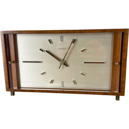 Vintage Hollywood Regency houten tafelklok van Kienzle, Duitsland 1960