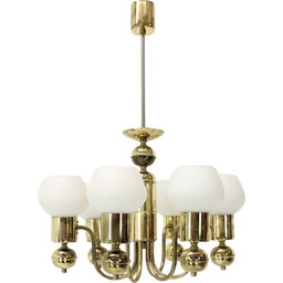 Vintage kroonluchter van glas en messing van Kamenicky Senov, Tsjechië 1960