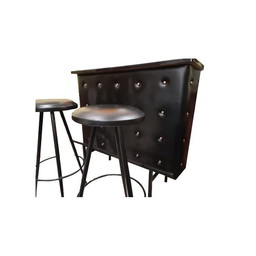 Vintage zwart metalen en kunstlederen barset, 1950Vintage zwart metalen en kunstlederen barset, 1950