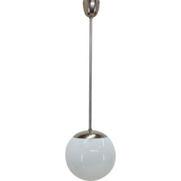 Paar vintage opaline en teakhouten hanglampen van "Horn", Denemarken 1955