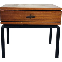 Vintage houten en metalen nachtkastjeVintage houten en metalen nachtkastje