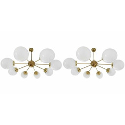 Paar vintage kroonluchters van opaalglas en messing, 1960