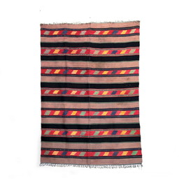 Vintage handgemaakt tapijt met strepen en geometrische patronen, Griekenland 1950