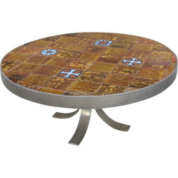Vintage salontafel van metaal en keramiek, 1970Vintage salontafel van metaal en keramiek, 1970
