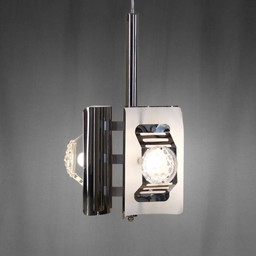 1x Vintage kroonluchter van chroom en wit Muranoglas, Italië 1970