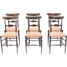 Zeldzame set van 6 walnoten Campanino Chiavari stoelen van Fratelli Levaggi 1950