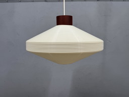 Vintage hanglamp met houten detailVintage hanglamp met houten detail