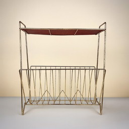 Vintage 60s krantenstandaard - Goud en rood metaal