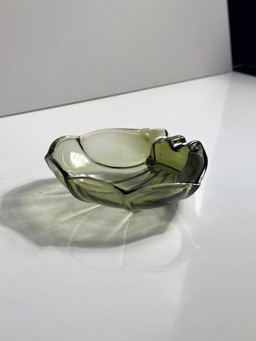 Vintage jaren 70 gerookte glazen schelpkom asbak zeepbakje groen Luminarc Arcoroc schelpplaat