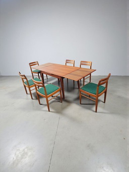 Seltenes Mid Century Teak Esszimmer Set 6x Stühle Esszimmerstühle Tisch ausziehbar 1960er Jahre Made in Denmark