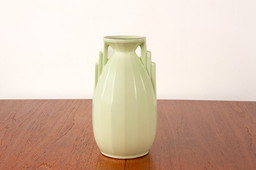 Art Deco vaas van fijn aardewerk, kleur appelgroen, fabriek Digoin-Sarreguemines, 1960.Art Deco vaas van fijn aardewerk, kleur appelgroen, fabriek Digoin-Sarreguemines, 1960.