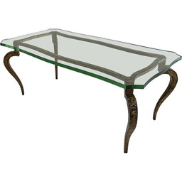 Vintage ijzeren, messing en marmeren salontafel van Raymond Subes