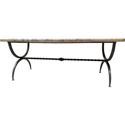 Vintage salontafel van keramiek en smeedijzer met eglomeraatglas
