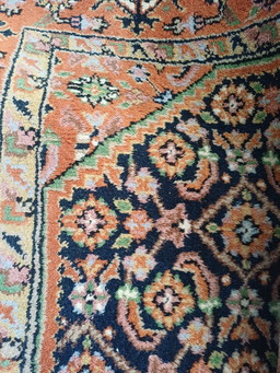 Geschilderd doek met een afbeelding van een lichtgekleurd Indiaas paard in profiel. Hedendaags.
