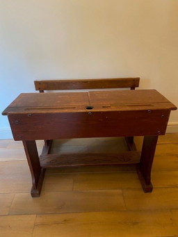Bank uit de jaren 50, bekleed met details.