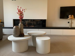 Ronde in hoogte verstelbare eettafel / salontafel 'Madumflud' vintage
