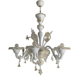 Witte eivormige tafellamp van veelkleurig glas in Murano-stijl