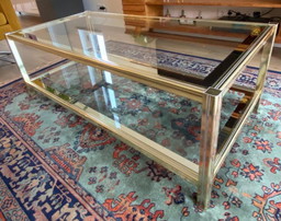 Franse Luxe RVS en Glas Salontafel jaren 70