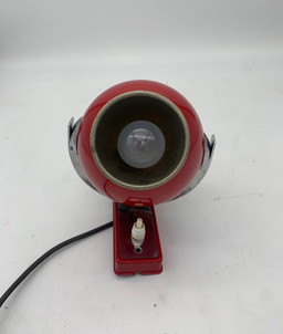 Vintage tafellamp, bijzettafellamp, decoratieve lamp met zuilvorm en geplooide plastic kap.