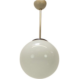 Vintage "Diabolo" vloerlamp in natuurlijk hout en opaline glas van Joseph-André Motte voor Disderot, 1960