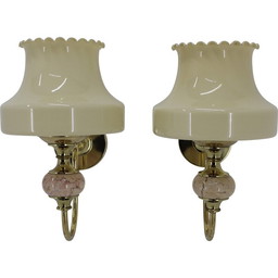Paar vintage Space Age wandlampen van bakeliet en melkglas, Tsjecho-Slowakije 1960