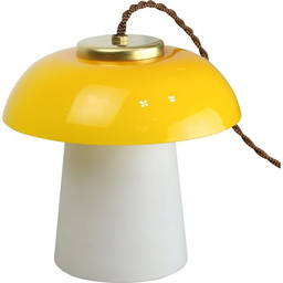 Vintage hanglamp van glas, gas, messing en kunststof, Tsjecho-Slowakije 1970