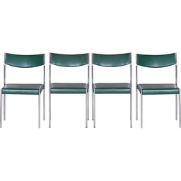 Set van 4 Art Deco vintage houten en groen fluwelen eetkamerstoelen, Tsjecho-Slowakije jaren 1930