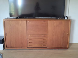 Vintage kaptafel van teakhout met spiegel in erg goede staat