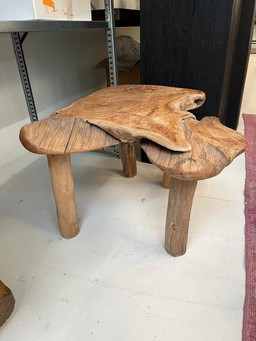 Zwevende Waterval Tafel Van Amerikaanse Iepenhout Met Burl. Smokey Grey Semi Transparent