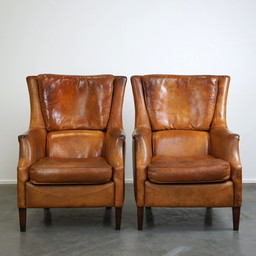 Set van twee schapenleren clubfauteuils met vaste kussens