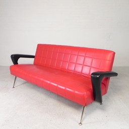 Mid Century Sofa Vintage Bank 1960 Rood Retro Fluweel