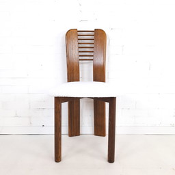Set van tien brutalistische razorback en bouclé eetkamerstoelen
