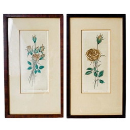 Paar Tjitske Elisabeth Modderman Litho schilderijen rozenPaar Tjitske Elisabeth Modderman Litho schilderijen rozen